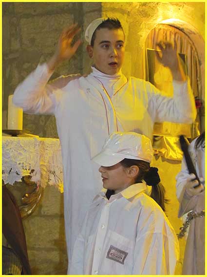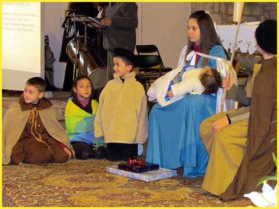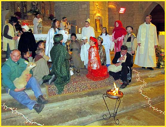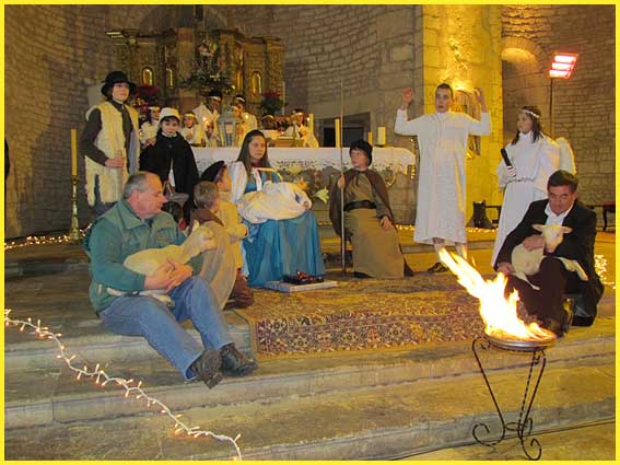 • Annulée pour cause de vent glacial, la procession avec les tambourinaires depuis la basse ville dut être annulée. Mais le cérémonial a dépassé les espérances : une crèche vivante scénarisée (bravo Yvette Riégert), de fort beaux chants repris en chœur par les fidèles, des musiciens tout aussi inspirés, la bénédiction des santons, le pot de l’amitié.