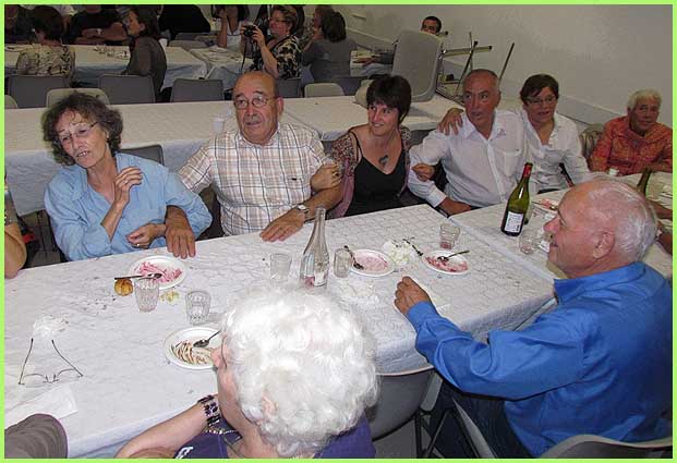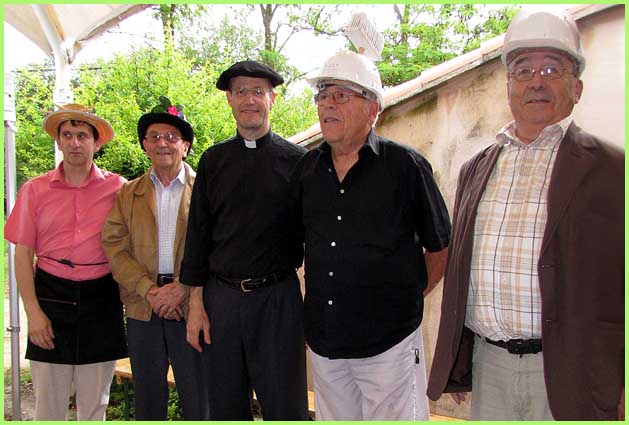 La messe célébrée sur place en fin de matinée est donc suivie d’un apéritif et d’une paella qui aura régalé 120 convives, encore comblés au dessert par un inénarrable pot pourri de chansons populaires, par des interprètes en verve et dûment chapeautés. Ceci en fonction d’un concours de chapeaux, remporté par Lydie chez les dames, et par Marcel chez les messieurs. Coiffé d’un béret scout, M. le curé est classé hors concours.