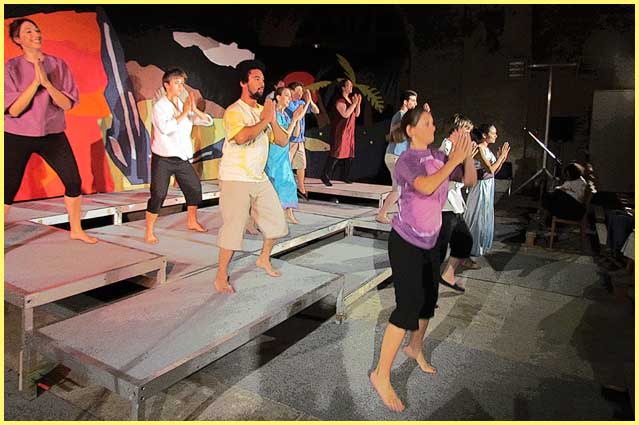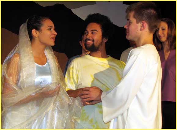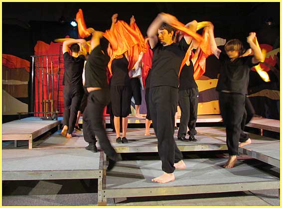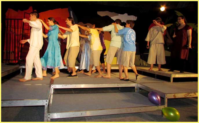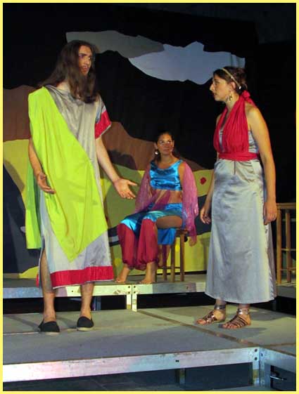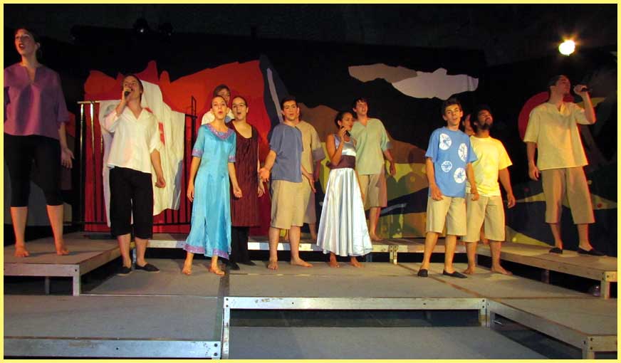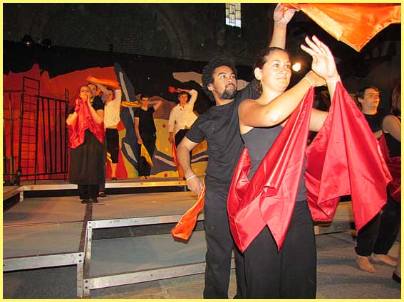 Ce que ces jeunes gens offrent à voir et entendre est superbe : un décor large et épuré (un judicieux patchwork d’étoffes), des costumes simples et seyants, des partitions chantées (calées sur une bande off), des enchaînements bien chorégraphiés et, le plus étonnant, un texte conséquent, débité sans accrocs (ni souffleur en coulisses).