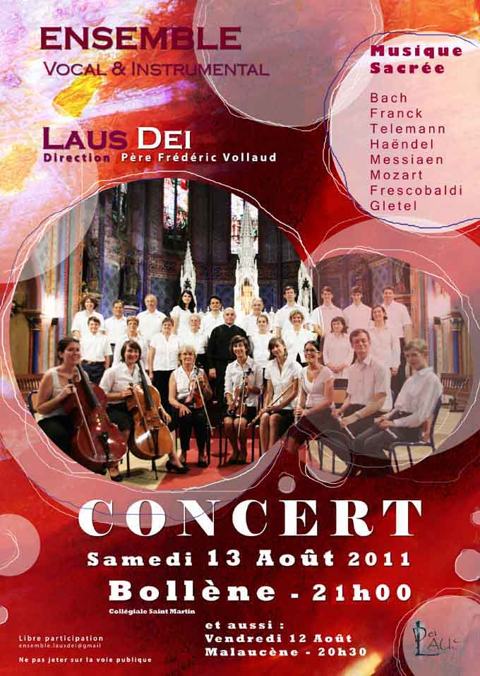 • samedi 13 août à 21h : « Laus Dei », chants sacrés (dans le cadre des Polymusicales)  Affiche