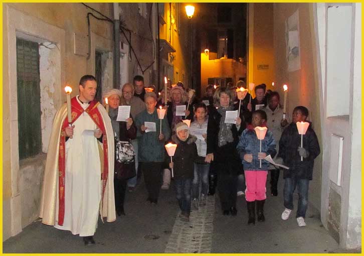 Procession et chants à la gloire de Marie en direction de la chapelle de Notre-Dame du Pont.