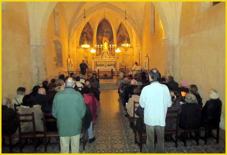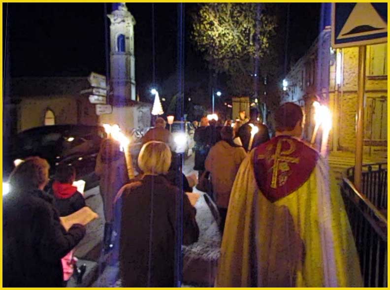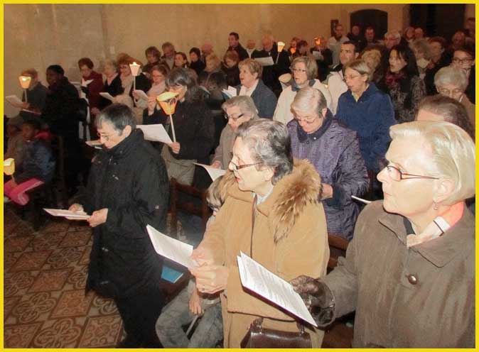 Très attachée au calendrier liturgique, la paroisse satisfait ainsi à la fête des lumières qui, à Lyon, projette des diaporamas fastueux sur les façades ou met des lumignons sur les fenêtres. Bollène préfère s’en référer au dogme : « Nous sommes loin de la capitale, mais associons-nous par la prière à la veillée de méditation à Notre-Dame de Paris autour du Cardinal Vingt-trois, archevêque de Paris, notamment en réparation du spectacle caricatural Golgotha Picnic insultant le Christ. »