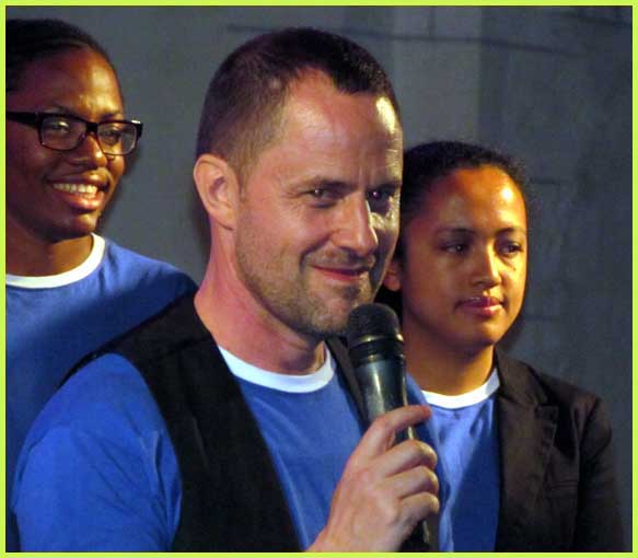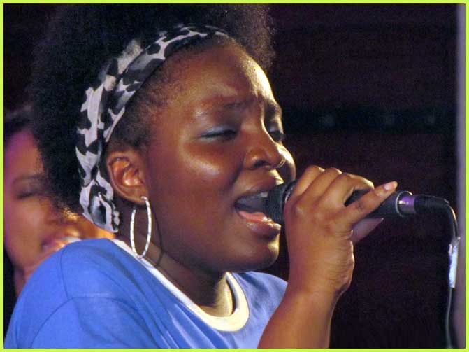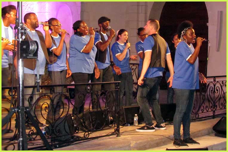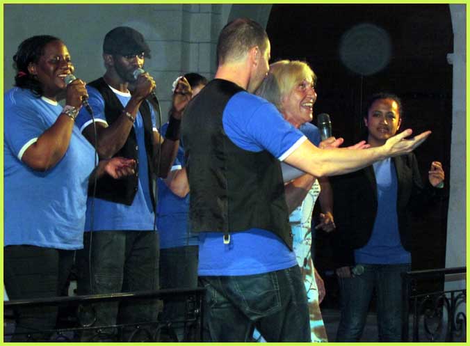 Des spectateurs (à gauche et à droite) se prêtent spontanément au chant du gospel.