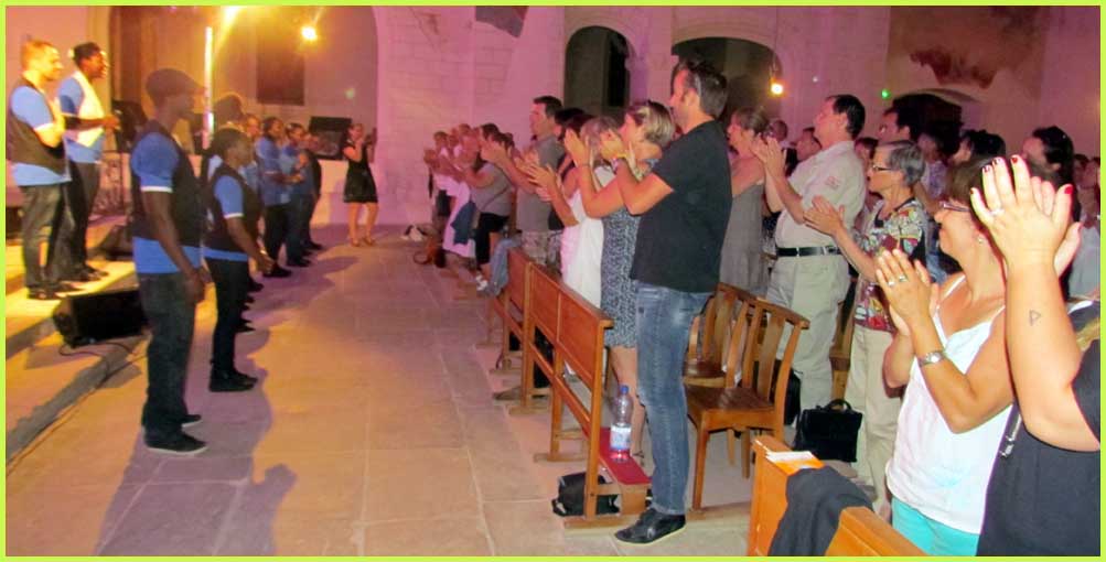 Actuellement en tournée en région PACA, ce joyau choral a donc vibré, samedi soir à Bollène, dans la collégiale Saint-Martin. Flairant l’événement, un public avisé avait fait le plein du saint lieu. Rien à voir avec les Polymusicales, par ailleurs attractives et diversifiées, qui continuent d’égrainer leur vingtaine de concerts. Par bonheur, ce soir de relâche festivalière laissait toute latitude au groupe New Gospel Family qui a pris le relais et comblé son public au-delà de toute espérance.