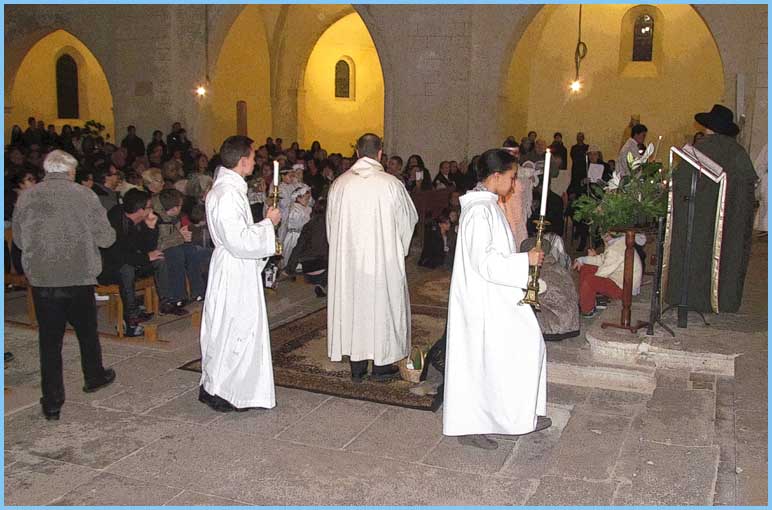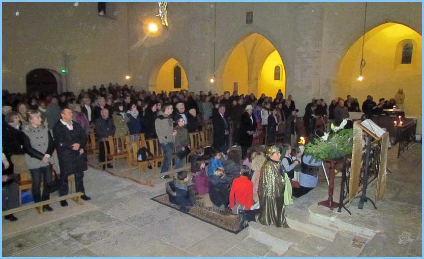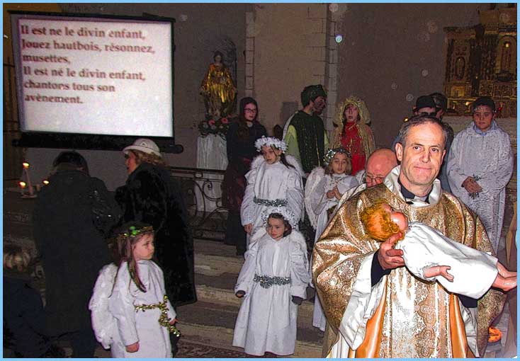 La forme vole au secours du fond erroné, au gré d’une crèche vivante avec récitants, musiciens, diaporama. C’est devenu une spécialité de la paroisse de Bollène.