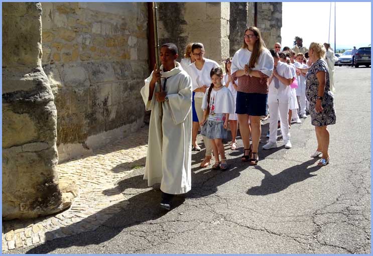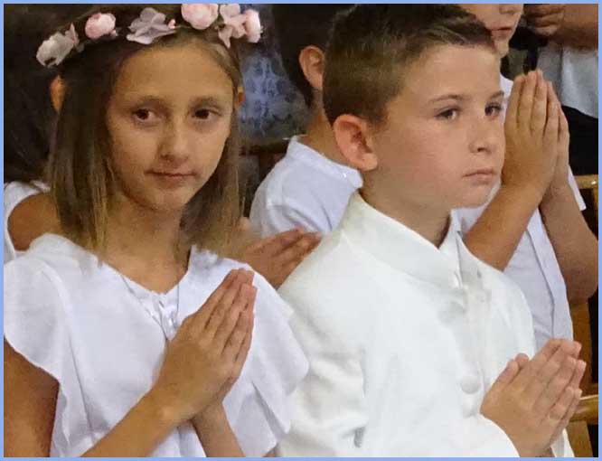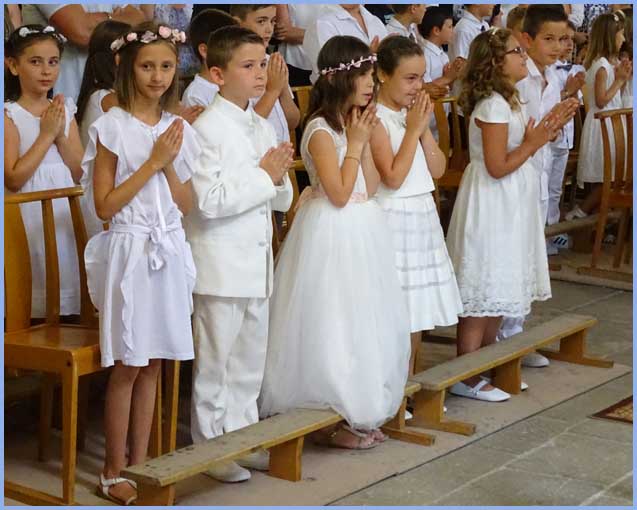 population, les tout jeunes communiants, vêtus de blanc, ont satisfait au