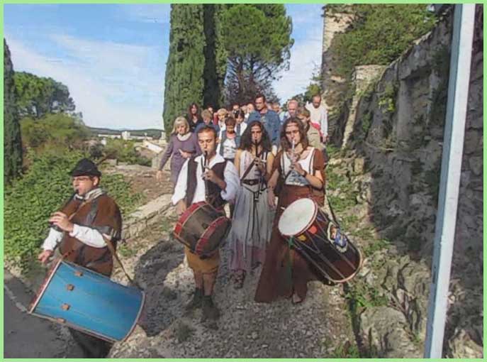 Ces lieux symboliques sont prétextes à des épisodes locaux, vécus au moyen âge, dont ils débordent pour évoquer les guerres de religion (moines jetés du haut de la tour en 1568) ou pour la chanson de Magali (Frédéric Mistral). Les saynètes sont écrites par Emile Borron. Des chants à l’intérieur de la collégiale, qui s’apparentent à des psaumes occitans, semblent coller au plus près à ce superbe élan médiéviste, d’une esthétique rare, qui, samedi et dimanche, a convaincu et trimbalé un large public sur la colline du Puy.
