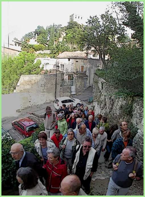 C’est une déambulation concertante, avec chant, danse et théâtre. Elle épouse les méandres du circuit médiéval, inauguré par la Ville au printemps 2010. Cinq haltes jalonnent ce parcours historique : La Collégiale Saint-Martin, la Maison Cardinale, la Chapelle des Trois Croix, la Maison de la Tour, le lavoir.