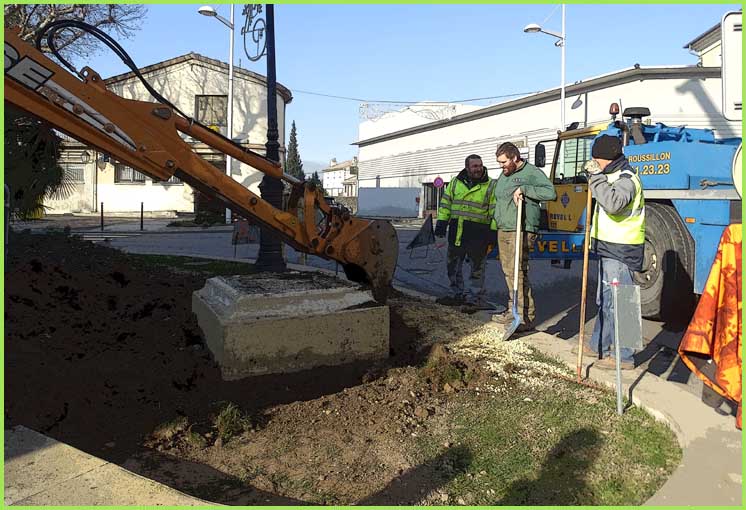 Ce vendredi matin, en centre ville, la circulation est passablement perturbée. Des travaux se situent aux extrémités des avenues Gambetta et Pasteur, à la hauteur du carrefour de la rue des Chabrières, momentanément impraticable. Autour d’un grand trou béant, en bordure de la chaussée, le chantier occupe une équipe d’ouvriers et de gros engins, de la Société Vauclusienne de Traitement (Mondragon), mandatée par la Ville de Bollène.