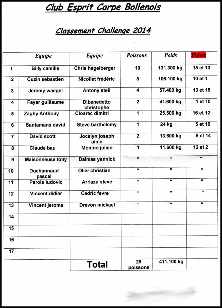 Classement du challenge