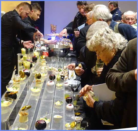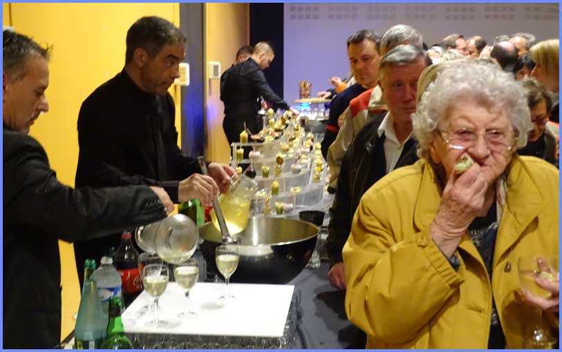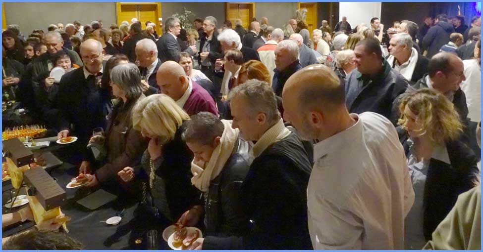 ![]() Ils sont venus, ils sont tous là. Debout, assis, tout ouïe... et salivant à l'idée du buffet qui les attend ! |