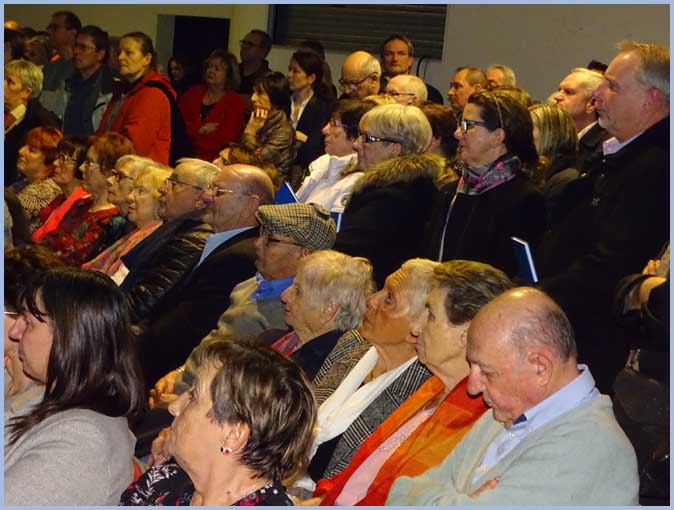 ![]() Le dispositif est adéquat. Des sièges accueillent les plus attentifs (et donc premiers arrivés). Le gros de l'assistance (dont les retardataires) reste debout. |