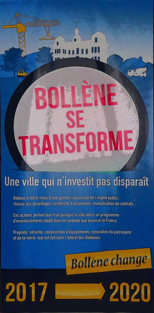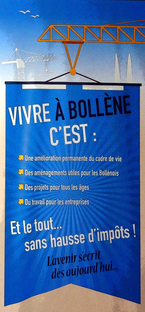 ![]() Le sermon est copieux... Tout comme le sera le buffet qui va suivre... Alors patience ! Madame le maire fêtera bientôt ses dix années de mandat à Bollène (comme elle l'a rappelé). D'où sa loquacité. Pas mal de choses ont été et seront encore réalisées... (voir ci-dessous) |