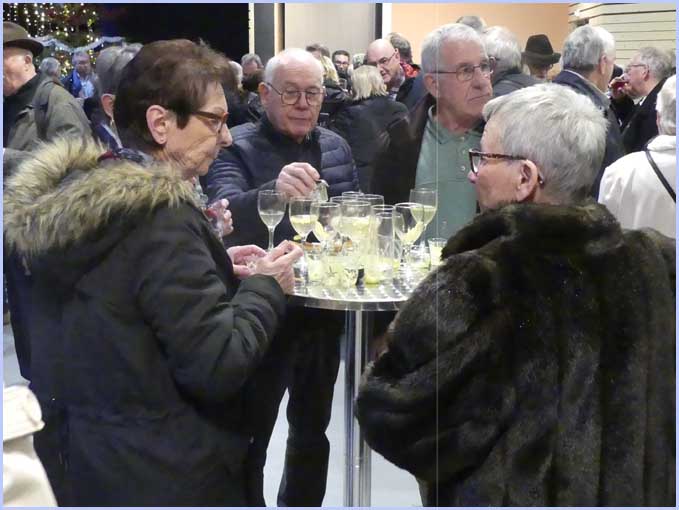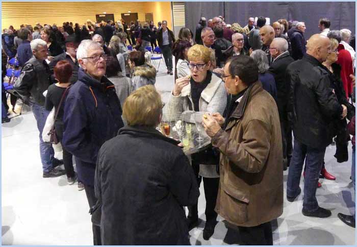 ![]() Ils sont venus en masse. Assis ou debout, ils opinent (mentalement) du bonnet et salivent (discrètement) en lorgnant (du coin de l'oeil) le buffet prometteur... |