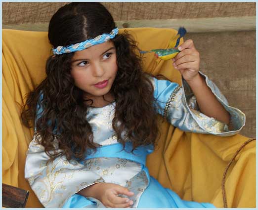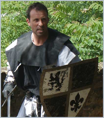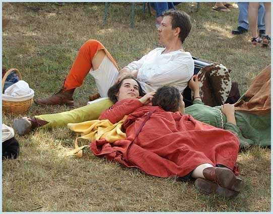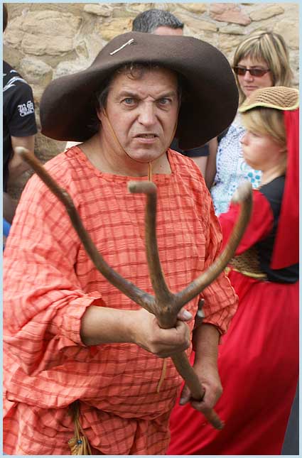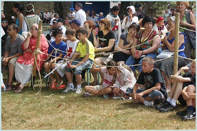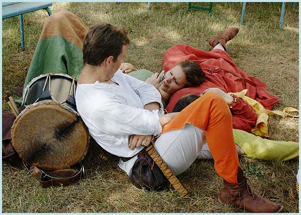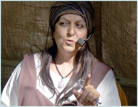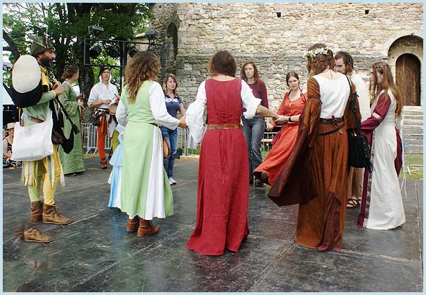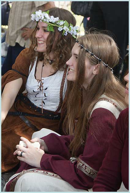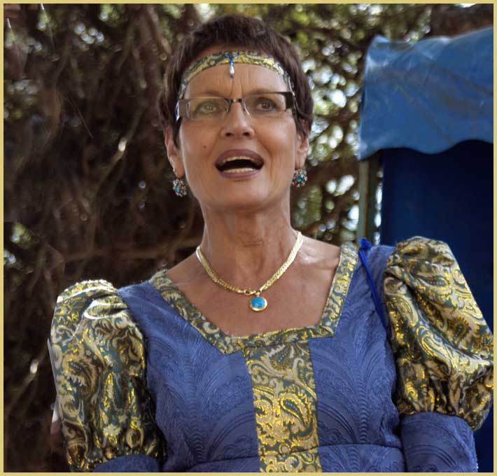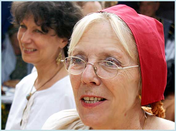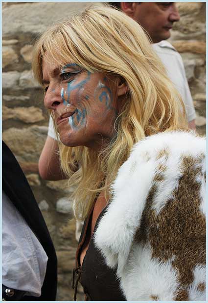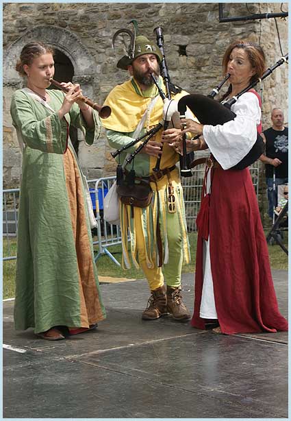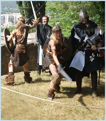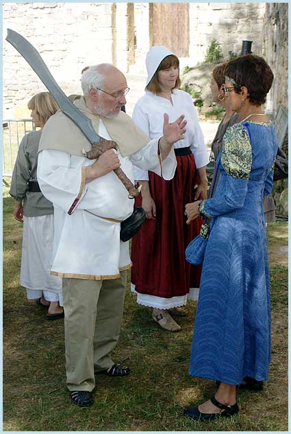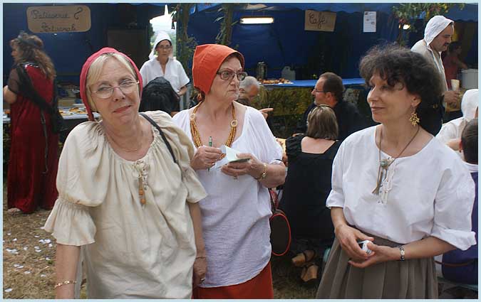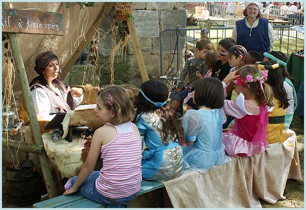 Une conteuse (à gauche) tient le haut du pavé médiéval. |