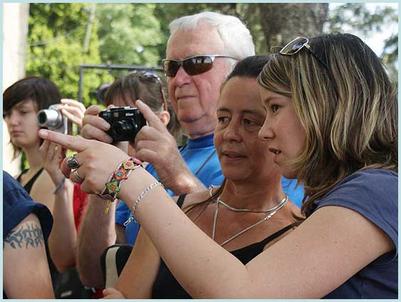 Les artistes (au centre) cachetonnent avec grâce. Autour : trop peu de costumes. Ça préfère mitrailler à coup de méga-pixels. |