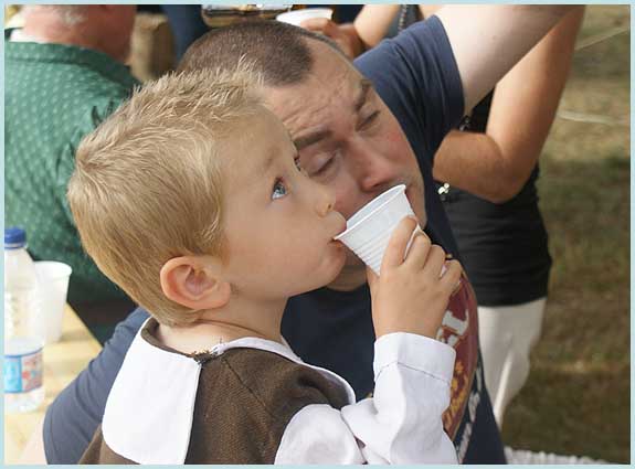 Après délibération, le jury va désigner les porteurs des plus beaux costumes... tandis que cuit le jambon de cochon. |