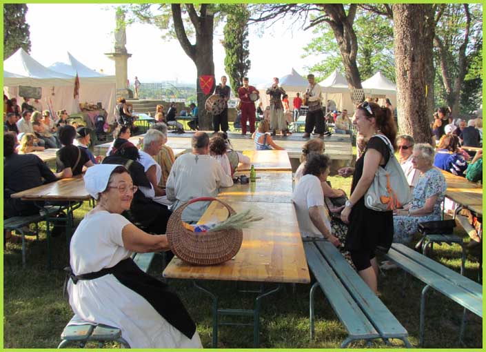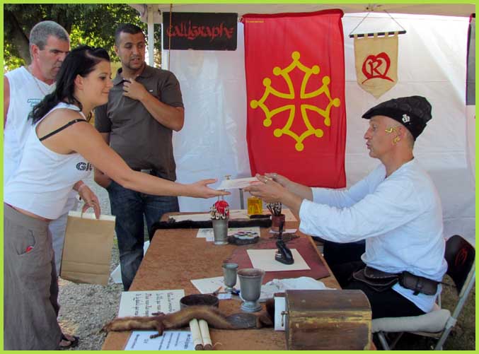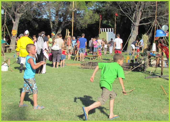 Ici, un vannier, là, un calligraphiste, plus loin, un mât de cocagne et des échasses pour amuser les enfants. Et, bien sûr, un marché médiéval, un banquet, des musiciens et saltimbanques. Le tout convergeant vers le feu de la Saint-Jean. Avec du renfort associatif : Oustau du Puiei, Coffre médiéval, France Adot, Rugby-club, Tennis-club…