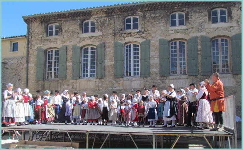 Les absents ont eu tort et ont manqué « Les Pastourelles de Campan », une entité traditionnelle apparue en 1918 dans le haut pays de Bigorre, qui est venue mesurer ses talents avec ceux du groupe local Li Cardelina, qui défend les valeurs du Haut Comtat depuis 1959. La comparaison était intéressante, au gré des chants et des danses, de rhèmes identiques différemment traités : vie paysanne, moissons, noces, veillées… Quant aux lanceurs de drapeaux, ils restent une spécificité bollénoise.