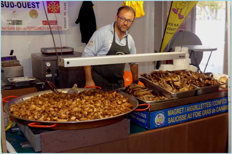 Etalée sur quatre jours, la foire Saint-Martin prend ses aises pour absorber son flux coutumier de visiteurs. Un pic d’affluence se situe lors de l’inauguration. La suite s’étire en passant par le fameux Palais gourmand, sous son grand chapiteau blanc. Nous y reniflons des senteurs appétissantes, issues de contrées diverses.