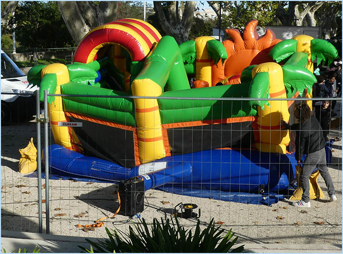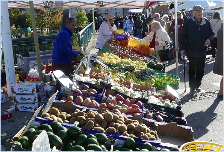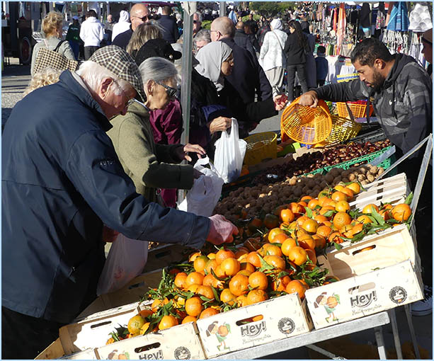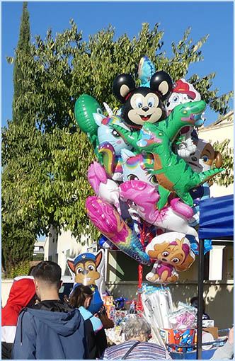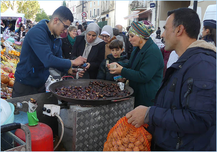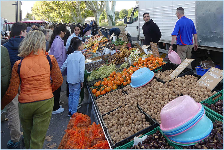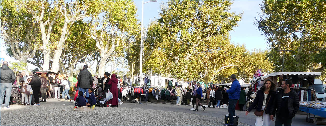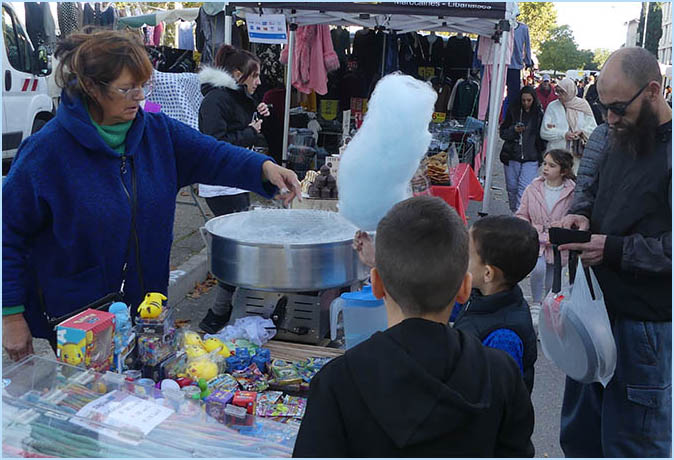 les étals colorés de la foire qui couvrent le centre