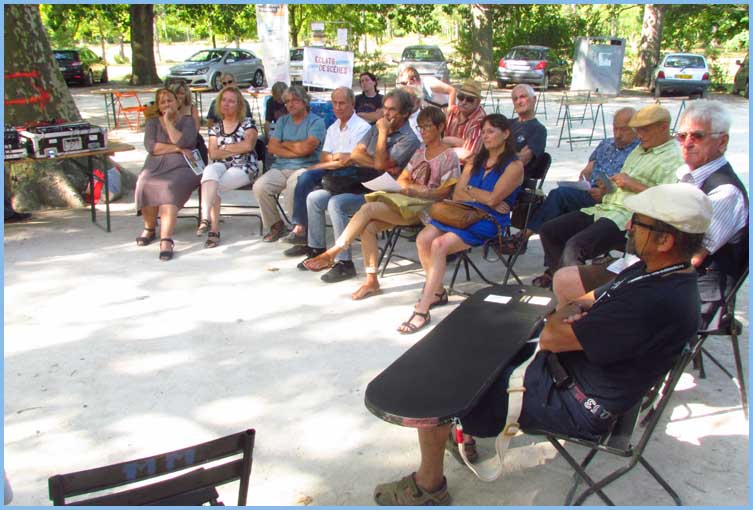 Parler d’un grand meeting serait exagéré. La table ronde était un peu réduite mais bien branchée. Elle était animée Marie-Hélène Collion et Pierre Rondot, militants, qui ont lancé la discussion.