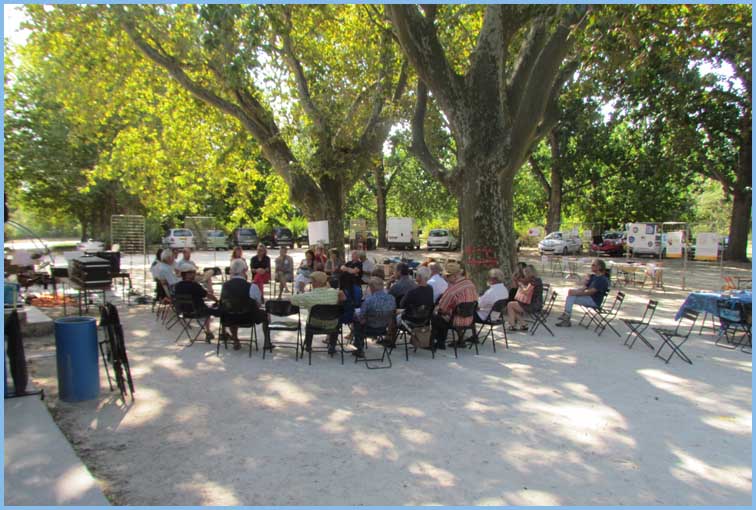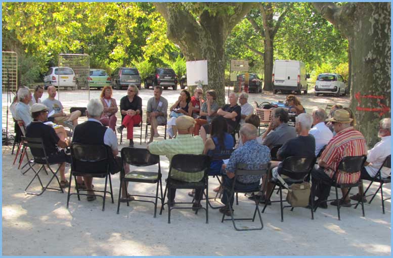 Un tout premier rassemblement avait pour cadre la ferme de l’Ile-Vieille, autour d’un repas champêtre, précédé et suivi d’un débat morcelé : « Des idées aux actes pour une société plus solidaire ». Divers stands apportaient leur caution : Eclats de Scènes, Cinébol, Cerfance, Terroirs du Sud, Mornas aujourd’hui, etc.
