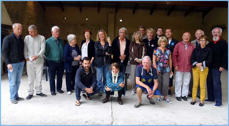Un rassemblement au sec sous le préau de la ferme de l’Ile-Vieille.