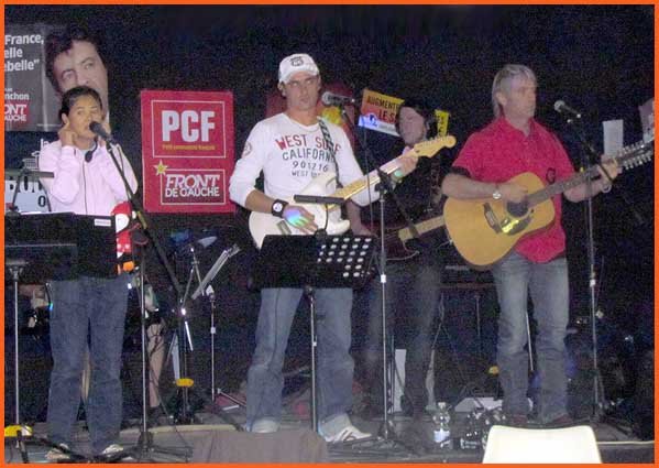 Précisément, la récente fête du BIP à Bollène a fait appel aux Bras KC pour tempérer la fronde militante par un volet musical. C’est là que nous avons retrouvé six chanteurs et instrumentistes qui se définissent ainsi : « Un groupe multi-âges (de 18 à 58 ans) mêlant passion de la musique pop et rock et paroles douces-amères, où l’amour ne rime pas forcément avec toujours… »