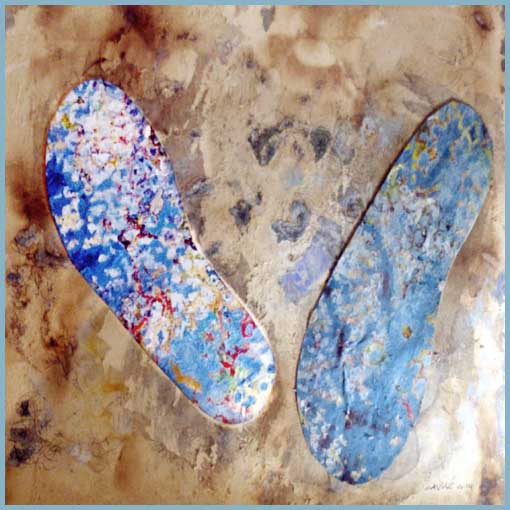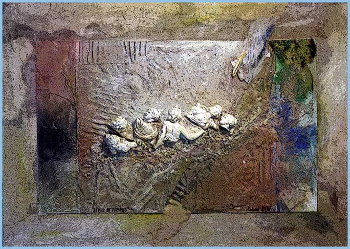 Sous le titre générique « Art-chéo », Roland Riché expose une série d’œuvres qui, selon lui, sont autant de miroirs destinés a refléter l’archéologie de nos vies. « J’ai principalement travaillé sur le thème d’Icare », précise-t-il, en évoquant l’expérience de l’homme volant, susceptible d’aider le visiteur à s’accrocher aux basques de la mythologie grecque.