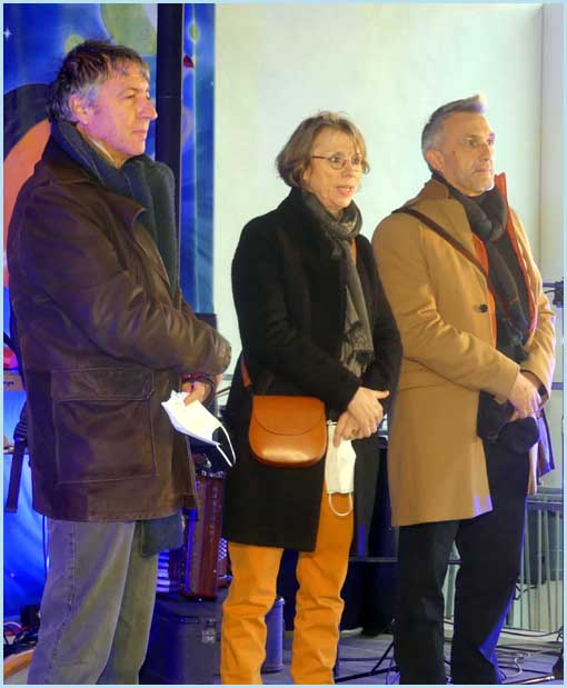 Un public représentatif regroupait des élus locaux, responsables d’associations et simples citadins, successivement gratifiés par trois interventions artistiques : « Ven » par la Compagnie Si Seulement avec une couple de danseurs acrobates aux chorégraphies envoûtantes autour d’un mât chinois, « La cuisinière » par la Compagnie Tout en Vrac avec un cartoon théâtral en solo comique rétro des années 50, un concert avec des petites histoires délicieuses par le trio (chant-violon-accordéon) de La Belle Lurette.  J. P.