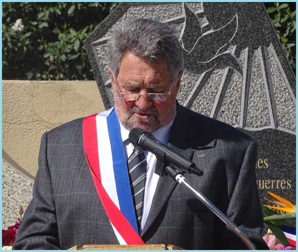 Vignard pour un dépôt de gerbes devant la stèle. Le maire Christian