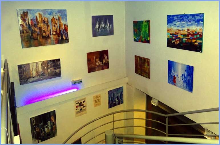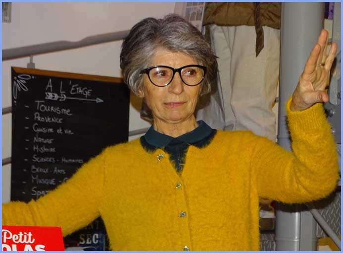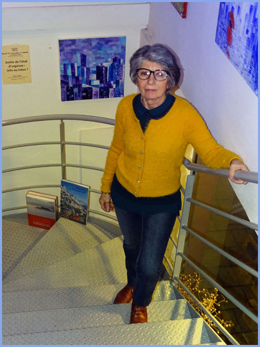 C’est l’actuel « coup de pouce » de la librairie L’Orange Bleue, à Orange. Non content d’y fidéliser des lecteurs satisfaits, qui en parlent « comme d’un lieu emblématique au large choix », on y propose aussi des expositions temporaires, destinées à élargir l’audience d’artistes peintres en quête de reconnaissance. Littérature et peinture cohabitent donc avec bonheur, grâce à des cimaises occasionnelles qui s’étendent entre deux niveaux, principalement dans la montée d’escalier.