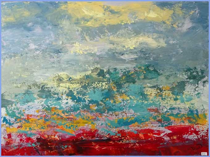 Qu’en est-il aujourd’hui ? « Je ne traite d’aucun thème particulier et travaille essentiellement à l’acrylique », argue-t-elle simplement. Quelques titres évocateurs s’alignent : graffitis, avenue, après la pluie, kaléidoscope, terre de feu, fond marin… Pas d’encadrement ni d’enjolivures littéraires. Les œuvres sont délivrées brut de décoffrage. Elles n’ont rien de définitif, mais chargées de promesses, comme tout artiste, lui-même curieux de nouveaux lendemains.
