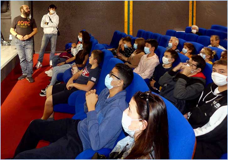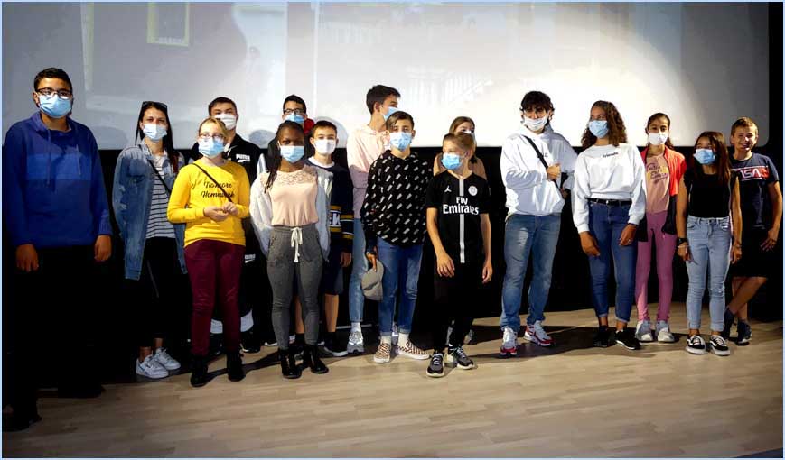 Les jeunes de Lapalud et son animateur Anthony sont accueillis par Cinébol.