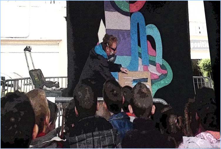Sept ans plus tard, cet acte de « Fest’art » est aujourd’hui une référence pour un nouvel épisode déjanté, lors d’une séance spéciale, consacrée au « Street art », un art contemporain urbain qui illumine nos rues. Immergé dans un flot multicolore, le public s’est donc rassasié d’un diaporama sur les murs peints de la ville de Valparaiso (Chili), une vidéo nommée « Le fabuleux destin d’un vieux rideau » (2013) d’Annie Sertour, retraçant l’œuvre de Pablito Zago, et la projection du film « Faites le mur » (2010) de Bansky, un maître du genre.