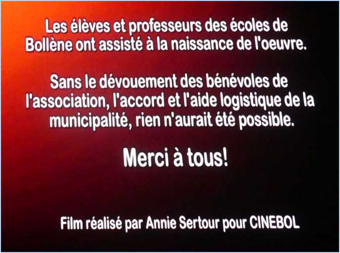 Cinébol est intervenu à mi-course en concluant sa séance spéciale par la projection d’un document vidéo sur l’exécution jubilatoire des fresques, réalisées par les jeunes émules du street art.  J. P.