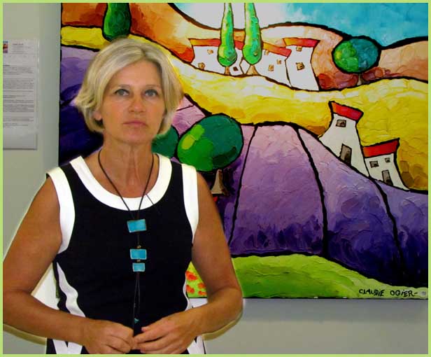 Aujourd’hui étalie à Visan et récemment invitée d’honneur d‘un salon à Pont-Saint-Esprit, elle paraît pour la première fois à Bollène où elle serait disposée à animer des ateliers pédagogiques en milieux scolaires. Elle expose actuellement à l’Office de tourisme. Visite et entrée libre jusqu’au 21 octobre. A consulter : www.claudieogier.com    J. P.