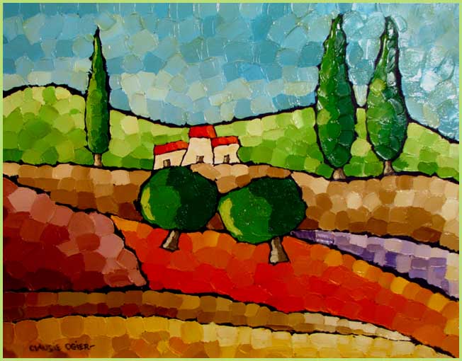 Parallèlement à son activité littéraire pour la jeunesse, qui comporte des best-sellers, Claudie Ogier poursuit donc une œuvre picturale hybride et rayonnante, aux couleurs antillaises et provençales. En dehors des courants classiques ou contemporains, elle n’admire aucun maître en particulier. Elle crée librement son propre univers et se libère des contraintes du réel : « J’ai d’abord peint des sujets hyper-réalistes, puis je m’en suis évadée par l’épuration en travaillant à l’huile et au couteau. » D’où ces compositions simples et éclatantes dans une gamme de tons primaires, d’une juvénilité débordante.