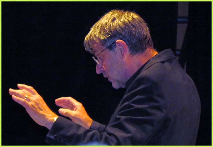 En seconde partie, Valentin Conte a empoigné ses cuivres, puis l’orchestre symphonique, pour une balade chaloupante, où, en réalité, tout défile au carré ! Car personne ne se dandine en dehors des clous. C’est merveille de swinguer de la sorte chez Debussy (Cake walk), Serge Lancen (Matin d’automne) ou sur des musiques de films (Chantons sous la pluie, pot pourri lié à Charlie Chaplin).