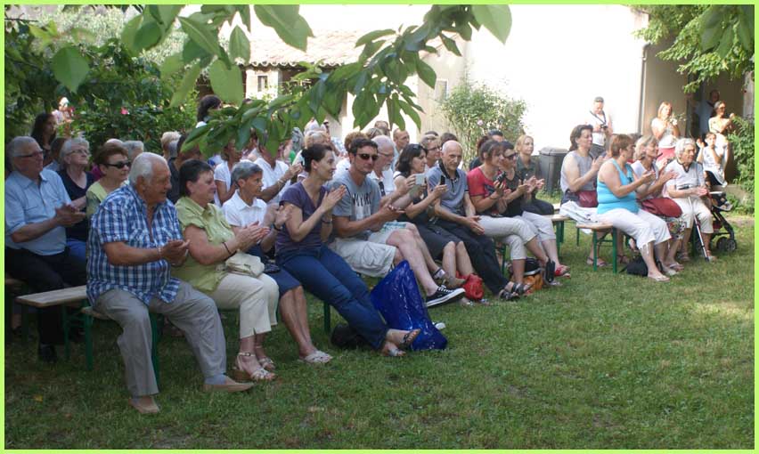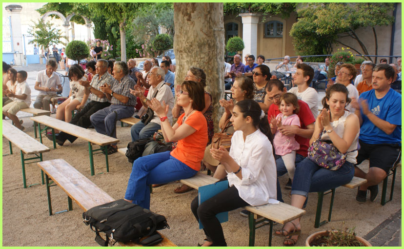 Un autre public attentif, dans la cour de l’hôpital,