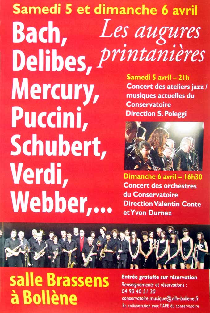 •  dimanche 6 avril à 16h30 : Concert des orchestres.
