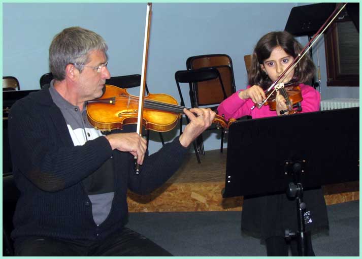 Yvon Durnez (à gauche) et sa classe d’initiation d’orchestre à cordes.