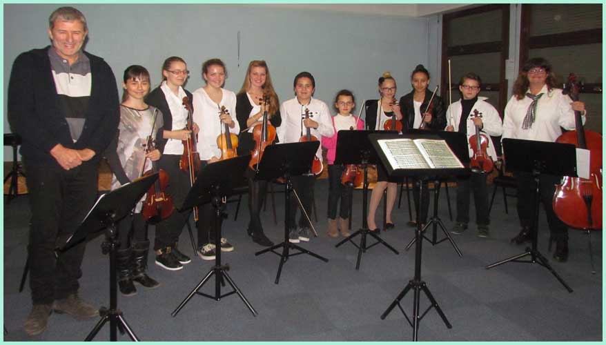 Au final, dix jeunes instrumentistes se sont réunis, tous membres de la classe d’initiation d’orchestre à cordes, pour un ravissant triptyque musical, puisé chez Mozart (Flûte enchantée), Haydn (Hymne de l’empereur) et Beethoven (Ode à la joie).