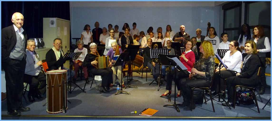 Ce pari ambitieux embrassait effectivement un extraordinaire répertoire : chanson d’Hannukka (fête juive), cha-cha-cha del sol, polkas provençales, romance médiévale, duo de Châteauminois, etc. L’intervention de l’atelier de cornemuses (air traditionnel du centre de la France) était particulièrement impressionnant.