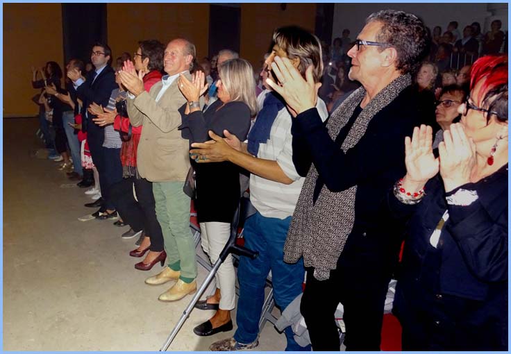 L’actuelle équipe des professeurs a conclu la cérémonie par un remarquable concert.   Debout, ils ovationnent aussi six décennies d’enseignement musical à Bollène.