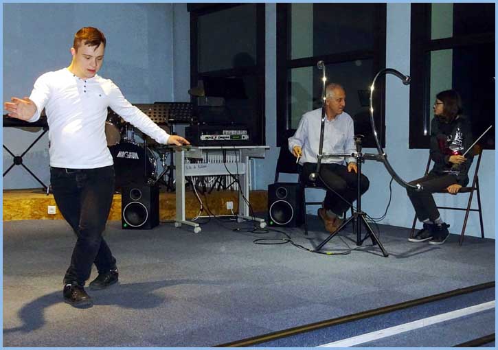 Le plus étonnant porte sur l'usage du bao-pao, cet instrument électronique à rayon laser, acquis sur l’initiative des parents d’élèves en 2015. Rappelons qu’il est adapté à l’utilisation par des personnes handicapées. Ce peut être aussi une base rythmique et harmonique pour toute autre discipline musicale, comme l’ont essayée plusieurs professeurs du conservatoire. Aujourd’hui, ce sont les jeunes Thibaut et Cyrielle qui, surmontant leur handicap, en ont fait l’expérience, le premier en dansant sur un air de Ludovico Einaudi, joué par la seconde, avec la participation de Patrice Conte (directeur). Une émouvante complicité.