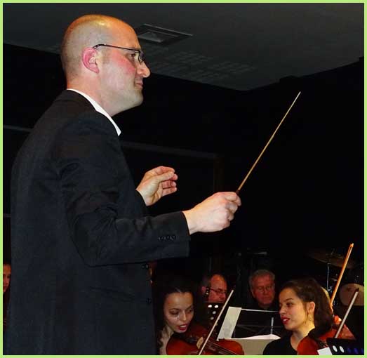 Le dimanche après-midi préserve la formule plus classique. Un concert testamentaire est issu du travail fourni par 300 élèves de tous âges. Les plus chevronnés, soit 75 exécutants, sont là, rejoints par quelques profs. Le tout se décline en trois formations distinctes : orchestres symphonique, d’harmonie et de chambre. Les deux premiers sont dirigés par Valentin Conte. Le troisième par Yvon Durnez, qui dirige aussi l’orchestre symphonique.