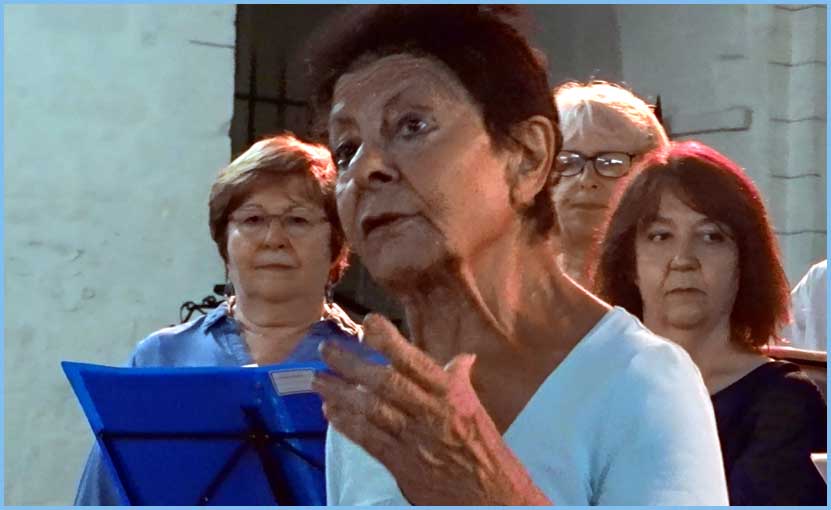 ![]() Caroline Maurel dirige les choristes qui chantent des gospels. |