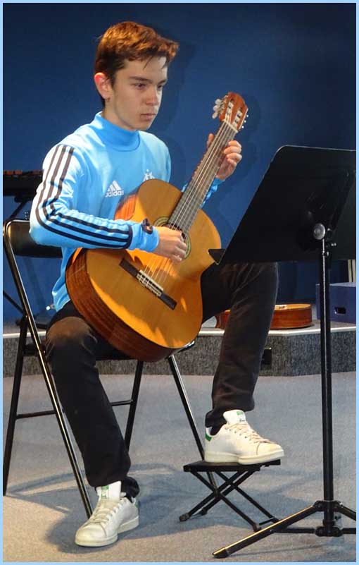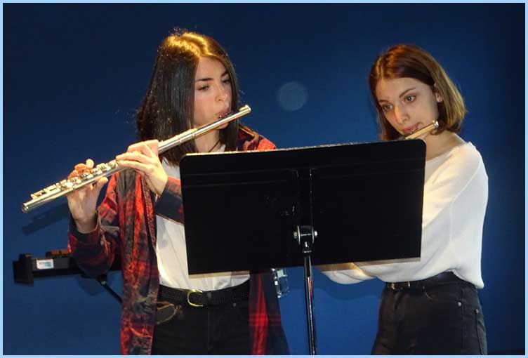 La dernière audition publique à l’auditorium précédait de peu le week-end musical annuel du conservatoire. C’était l’occasion d’évaluer le cursus des élèves qui s’échelonne au gré des cycles. Cet aperçu concernait les classes de flûte traversière, violon, violoncelle, piano, guitare et xylophone. La diversité des pratiques instrumentales rejoignait celle des partitions, puisées chez Paganini, Albeniz, Mozart, Beethoven, Scarlatti, etc. En aval de ces exercices plus ou moins maîtrisés, d’importants concerts sont donc proposés à un large public. Deux prestations différentes sont programmées à la salle Brassens.
